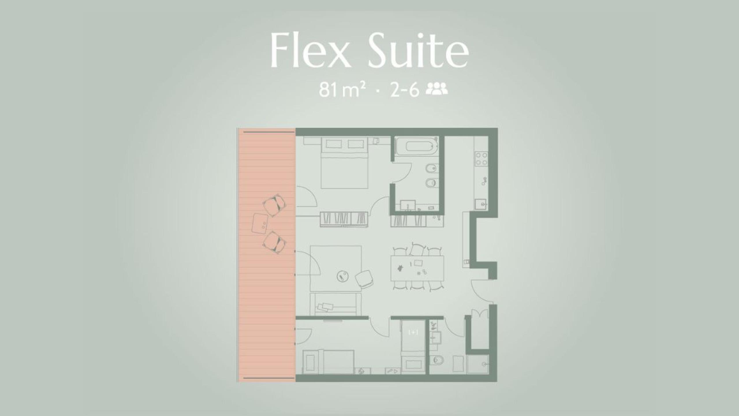 The special thing about our Flex Suites, in addition to the high-quality furniture, is the possibility of combining environments. The communicating doors create plenty of space for larger families or groups of friends for many shared holiday moments.