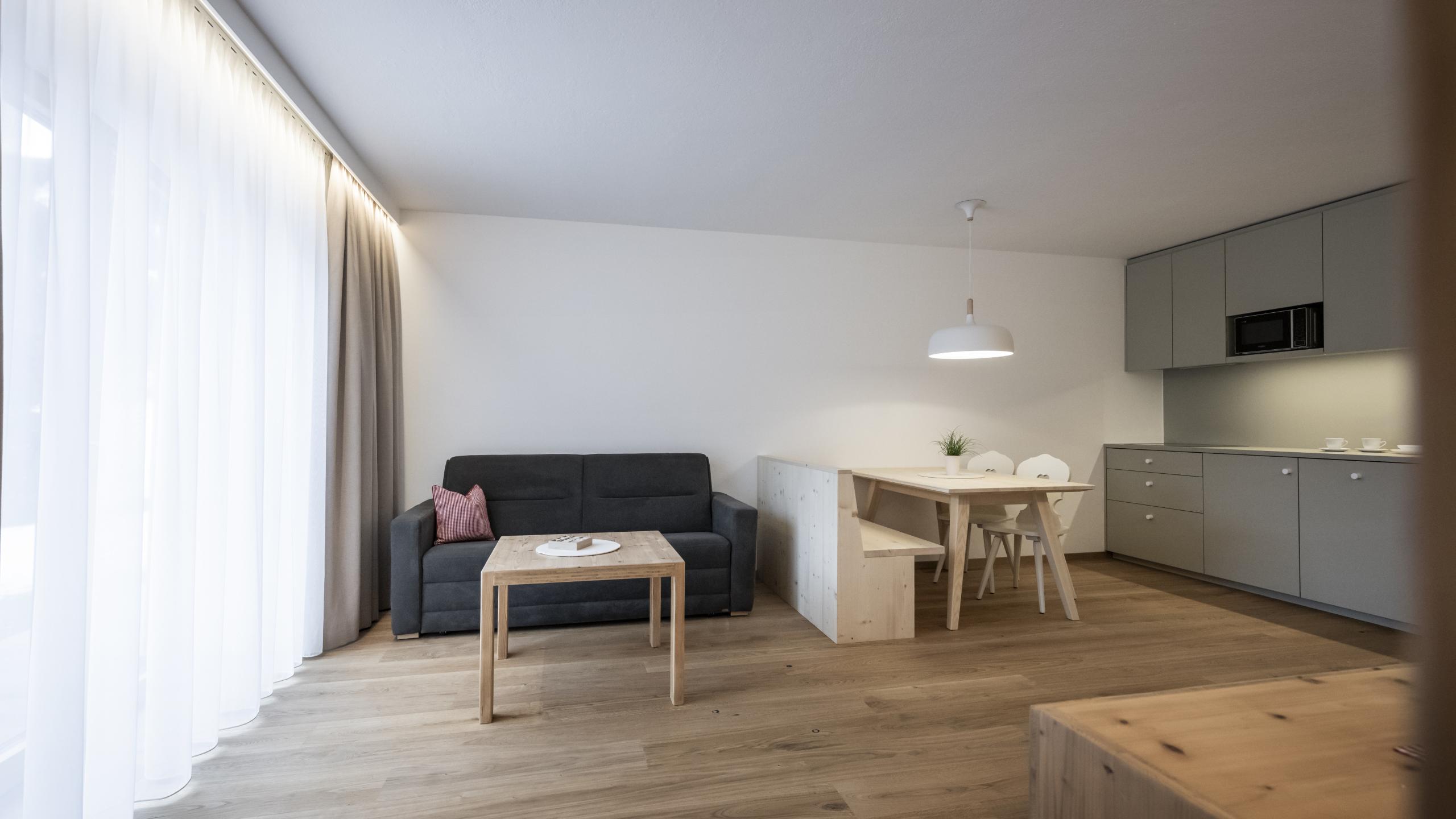 Cozy and spacious apartment, fully renovated and furnished in spruce wood with wooden flooring.