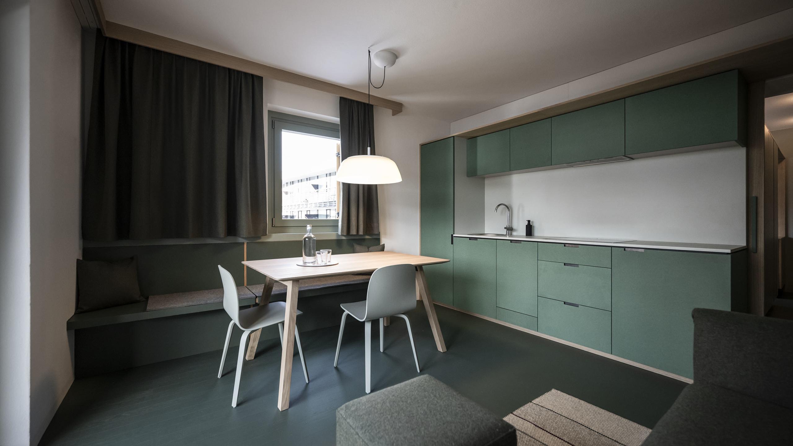 Il design semplice e gli elementi caldi, come legno e tessuti di alta qualità, conferiscono alla Smart Suite Green un’atmosfera accogliente e di benessere. La camera da letto separata con un grande letto a castello per due o tre posti aggiuntivi offre sufficiente privacy. Completamente rinnovato a Dicembre 2022.