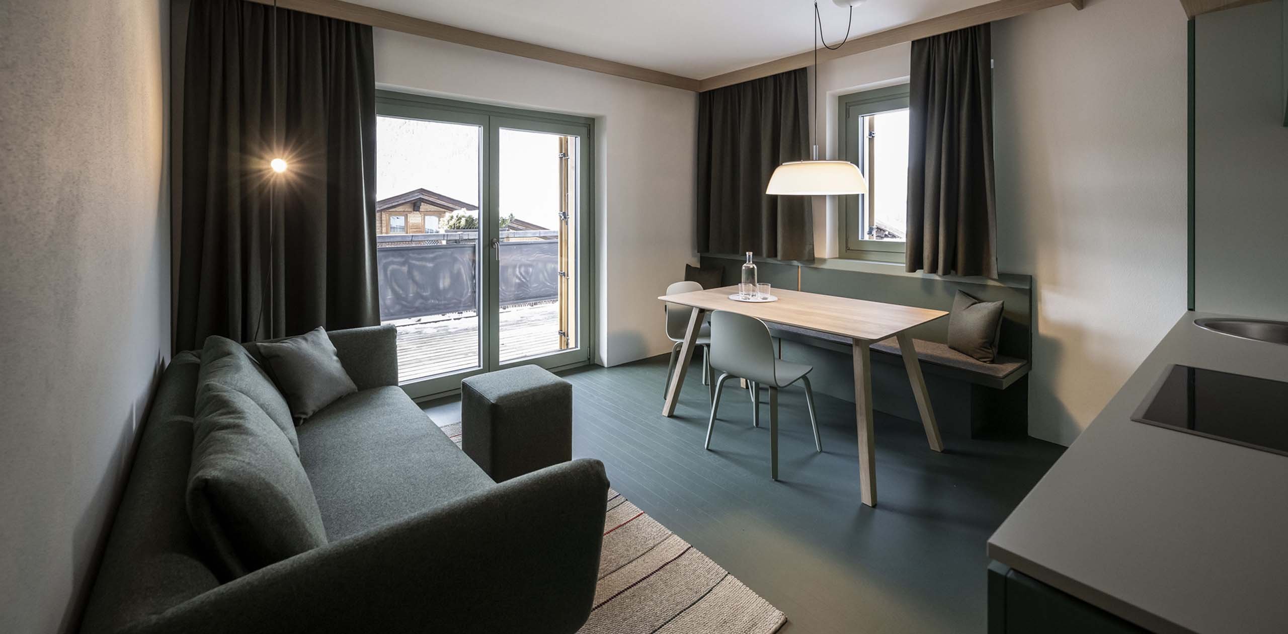 Nel Residence Paramount Alma, gli appartamenti accoglienti e spaziosi con camere da letto separate e un design fresco sono un vero e proprio invito a godersi il benessere. In base alle vostre esigenze, potete scegliere di cucinare in autonomia nell’appartamento oppure di usufruire dei nostri servizi inclusi, perché il Family Resort Rainer si trova letteralmente a due passi. Gli appartamenti sono dotati di angolo cottura, lavastoviglie, microonde, 2 TV e molto altro. Il giardino sul tetto del Residence Paramount Alma dispone di una vasca idromassaggio riscaldata con vista panoramica, inoltre, troverete il salone Paramount, un angolo giochi e una lavanderia.