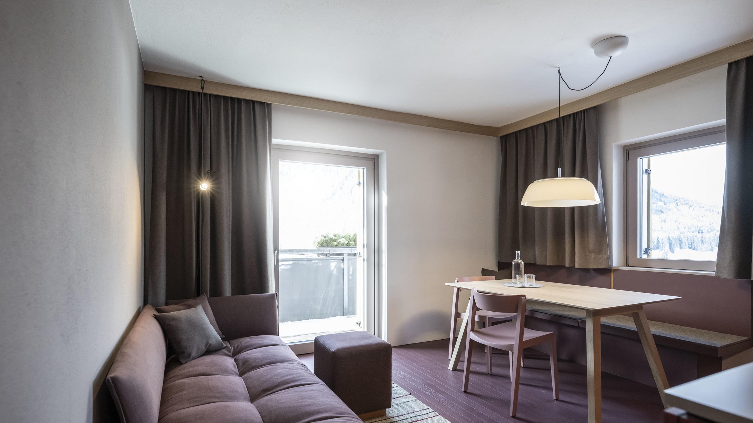 1 Wohn- und Essbereich mit Esstisch, ausziehbarer Couch und TV. Die Kochnische ist mit 4 elektrischen Kochfeldern, Mikrowelle/Grill, Kaffeemaschine (Nespresso), Wasserkocher und Spülmaschine bestens ausgestattet