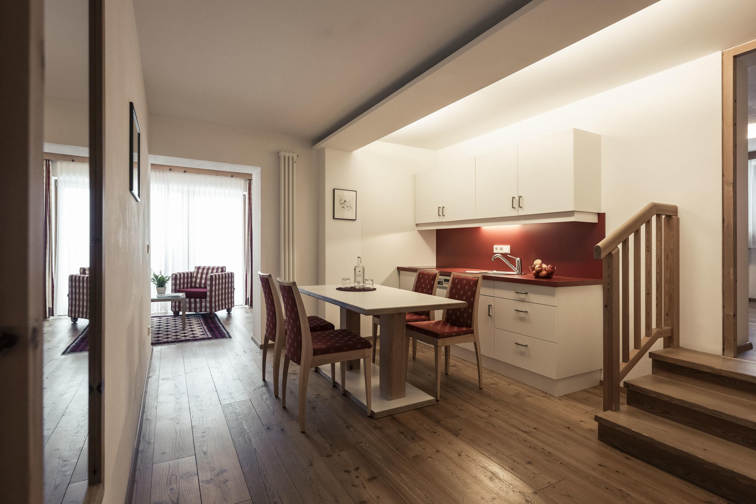 Geräumige Familiensuite mit Küche und großer Panoramaterrasse mit Blick auf die Sextner Dolomiten